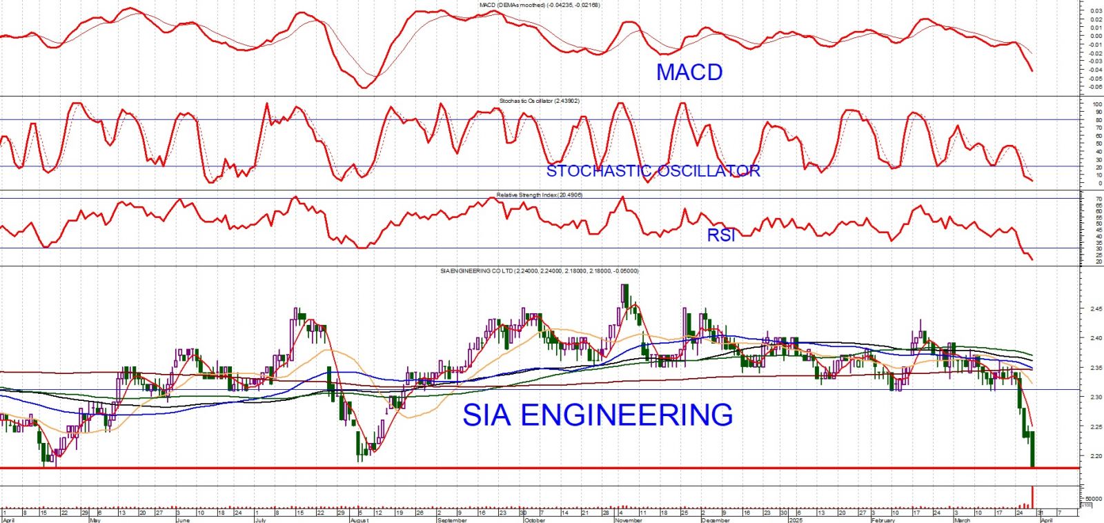 (所提供的本文只供参考, 投资买卖,必须審慎,自负责任。版权所有,未经允许,禁止转载。) ( All contents provided are for informational purposes only. Access to and the use of the contents are at the user's own risk. You should assess your situation and risk tolerance, and do your own due diligence before making any investment decisions. All losses and costs associated with investing are your responsibility. All rights reserved. This material may not be published, broadcast, or redistributed without permission.) The following is the market analysis by Phillip Securities Principal Remisier Mr Willie Tan Yi Li: "SIA ENGINEERING is a government-linked stock. After a sharp drop, it has touched a strong support line. If it can hold 2.18, it will likely do well.