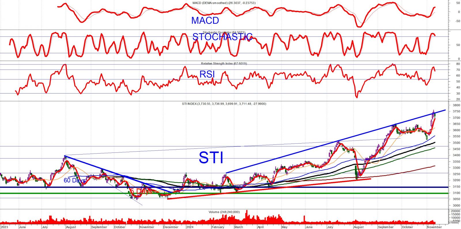 (所提供的本文只供参考, 投资买卖,必须審慎,自负责任。版权所有,未经允许,禁止转载。) ( All contents provided are for informational purposes only. Access to and the use of the contents are at the user's own risk. You should assess your situation and risk tolerance, and do your own due diligence before making any investment decisions. All losses and costs associated with investing are your responsibility. All rights reserved. This material may not be published, broadcast, or redistributed without permission. ) Mr Tan Yi Li had repeatedly recommended the buying of local Singapore stocks earlier this year, especially the buying of government-linked stocks. (Please refer to Ecomm market updates in 31 Aug 2024, 9 Aug 2024, 7 Aug 2024, 26 Mar 2024, 15 Feb 2024, 25 Jan 2024). In the 9th August market update, he wrote that "the market outlook looks good. I personally think that local stock prices are still low, and we may still look to invest in local stocks." In the 31 August market update, he mentioned that "As the general election of Singapore approaches, we may look out for government-linked companies" Here is a look at how local government linked stocks had performed now (compared to in August): DBS: 12 Aug: $33.98 25 Oct: $39.15 (Up +15.2%) Keppel: 12 Aug: $5.95 25 Oct: $6.51 (Up +9.4%) SATS: 12 Aug: $3.03 25 Oct: $4.01 (Up +32.3%) Sembcorp: 12 Aug: $4.63 25 Oct: $5.27 (Up +13.8%) SIA: 12 Aug: $5.90 25 Oct: $6.47 (Up +9.7%) ST Eng: 12 Aug: $4.25 25 Oct: $4.72 (Up +11.1%) STI 12 Aug: 3235 pts 25 Oct: 3593 pts (Up +11.1%)