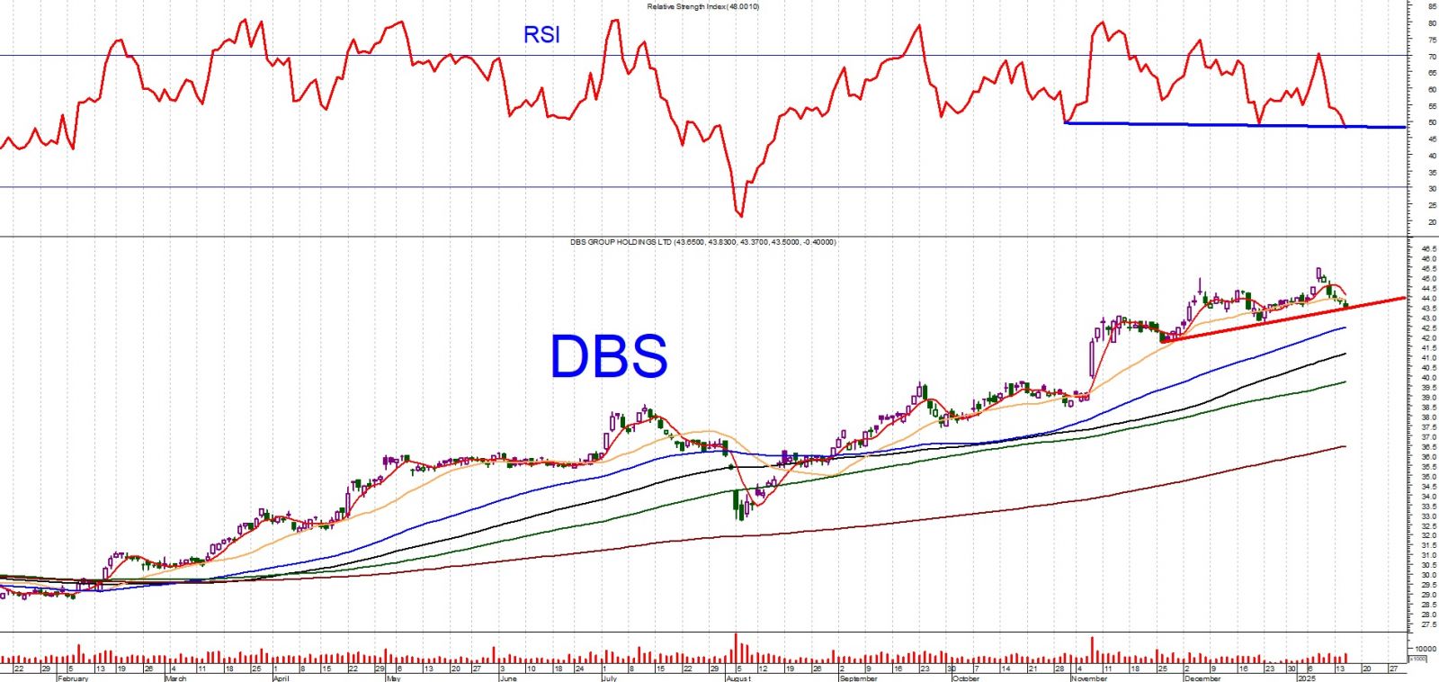 以下是辉立证券首席股票经纪陈奕利先生的股市分析: "星展集团第四季和全年业绩创新高,终期股息也增加。集团董事会提议第四季派发每股60分的终期股息,比之前的派息增加6分,这使得集团全年派息每股2.22元,较一年前增加27%。 星展集团计划推出季度资本回报股息,降低过剩的资本,2025财年第一季为每股15分。这个消息带动星展集团星期一股价再创新高,突破46元。 在银行股的带动下,海指上涨。星展集团股价闭市报45.38元,收涨1.57%。大华银行和华侨银行闭市报37.77元和17.39元,收涨1.04%和0.35%。" (所提供的本文只供参考, 投资买卖,必须審慎,自负责任。版权所有,未经允许,禁止转载。) ( All contents provided are for informational purposes only. Access to and the use of the contents are at the user's own risk. You should assess your situation and risk tolerance, and do your own due diligence before making any investment decisions. All losses and costs associated with investing are your responsibility. All rights reserved. This material may not be published, broadcast, or redistributed without permission.) The following is the market analysis by Phillip Securities Principal Remisier Mr Willie Tan Yi Li: "DBS Group's fourth quarter and full-year results hit new highs, and the final dividend also increased. The group's board of directors proposed a final dividend of 60 cents per share in the fourth quarter, an increase of 6 cents from the previous dividend, which makes the group's full-year dividend $2.22 per share, an increase of 27% from a year ago. DBS Group plans to introduce a quarterly capital return dividend of 15 cents per share per quarter to be paid out over 2025. The news drove DBS Group's share price to a new high on Monday, breaking above $46 at one point.